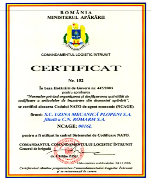 Fiind o uzină cu tradiție, dar și cu viziune, investim constant în modernizarea echipamentelor, dezvoltarea de produse noi și adaptarea la cerințele actuale ale pieței de apărare. Suntem pregătiți să răspundem rapid solicitărilor din țară sau din partea partenerilor externi, oferind soluții competitive și conforme standardelor internaționale.
